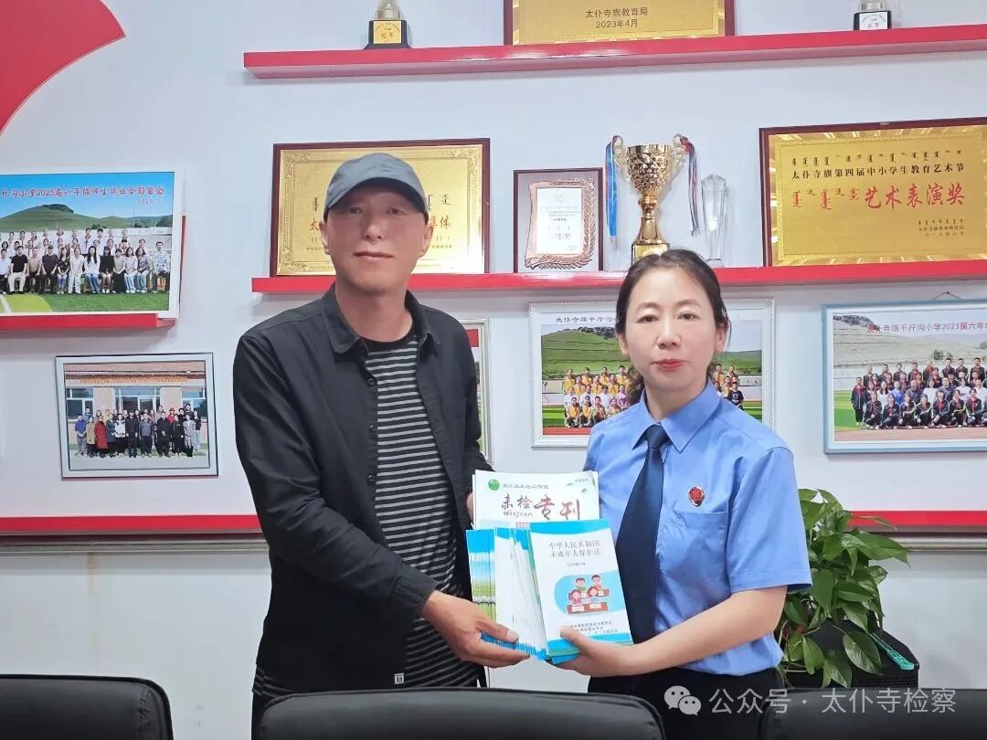 法治课后,检察院一行与学校领导、教师召开专题座谈会,详细了解学校师资配置、法治教育开展现状及实际需求。为支持学校持续推进法治教育,检察院现场赠予学校《中华人民共和国未成年人保护法》《中华人民共和国预防未成年人犯罪法》《中小学生普法指南》《中小学生安全教育读本》《太旗检察院工作专刊》等法治书籍和学习资料,为师生提供更多法律学习资源,推动法治教育在校园常态化开展。