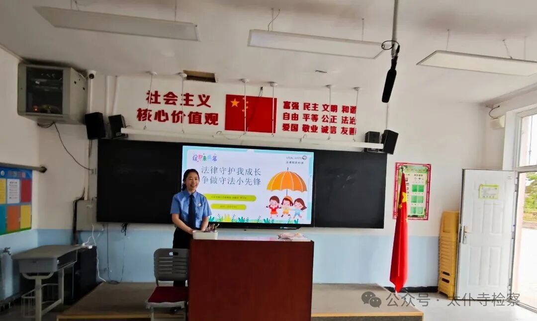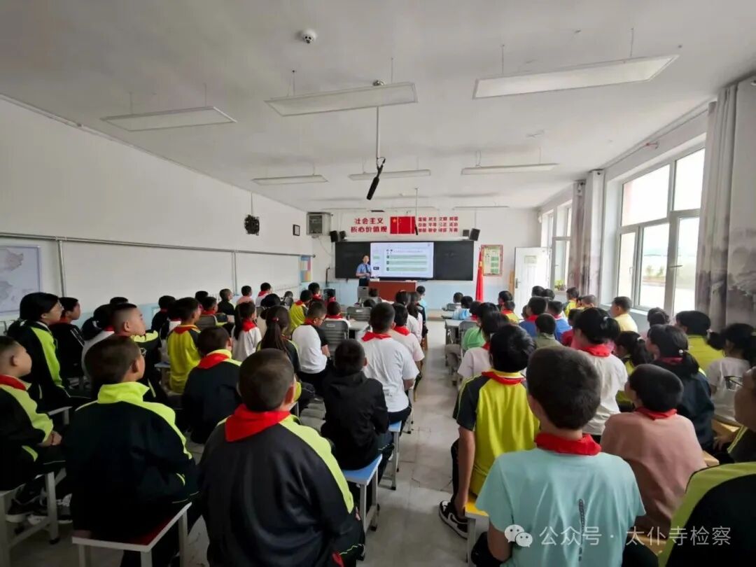 2025年8月26日,太仆寺旗千斤沟镇小学迎来新学期开学第一天。学校高度重视未成年人法治教育,将法治课纳入“开学第一课”核心内容,特别邀请兼任该校法治副校长的太仆寺旗人民检察院常务副检察长贾玉宏到校,以“法律守护我成长,争做守法小先锋”为主题,为全校一至六年级共70多名学生讲授法治课,用法律知识为学生新学期成长保驾护航。