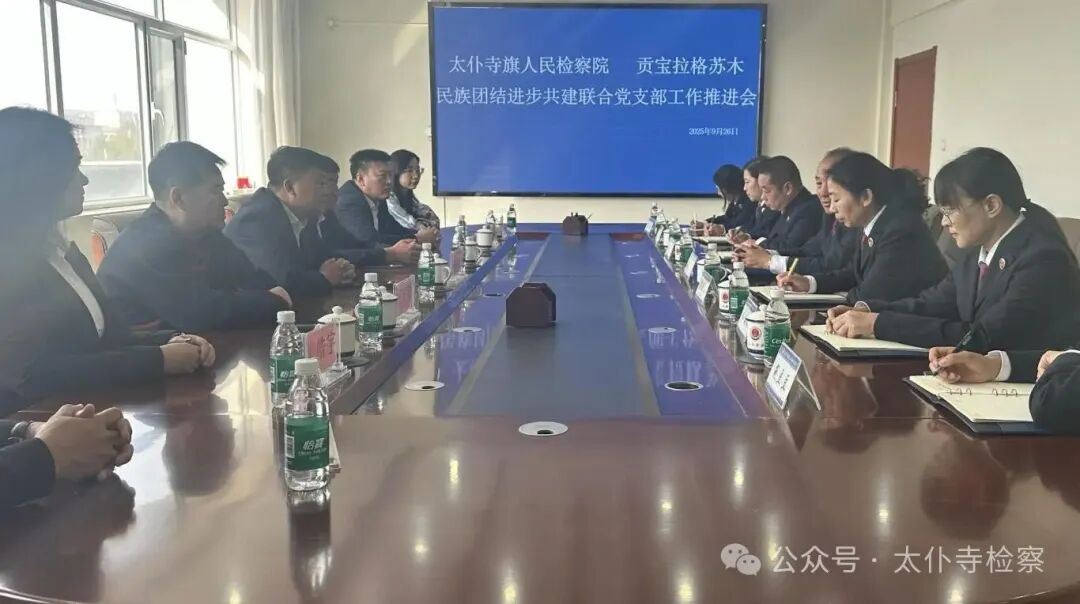 随后召开了民族团结进步共建联合党支部工作推进会。会上,党组书记、检察长那日苏强调检察机关是法律宣传的重要窗口,近几年太仆寺旗人民检察院积极参与各项民族团结共建活动。通过维护生态环境、检察官大讲堂、公益宣传等方式体现出了深厚的民族团结情感,形成了“民族团结一家亲”的良好氛围。民委负责人朱国栋表示,非常感谢太仆寺旗人民检察院对民族团结工作的重视,今后民委将继续与检察机关、苏木嘎查紧密联系,推动民族团结进步工作更上一个台阶。贡宝拉格苏木与会人员表示将与检察机关密切配合共同推进草原保护、草畜平衡、矛盾化解等工作,精心打造有温度、有力量的民族团结进步党支部。