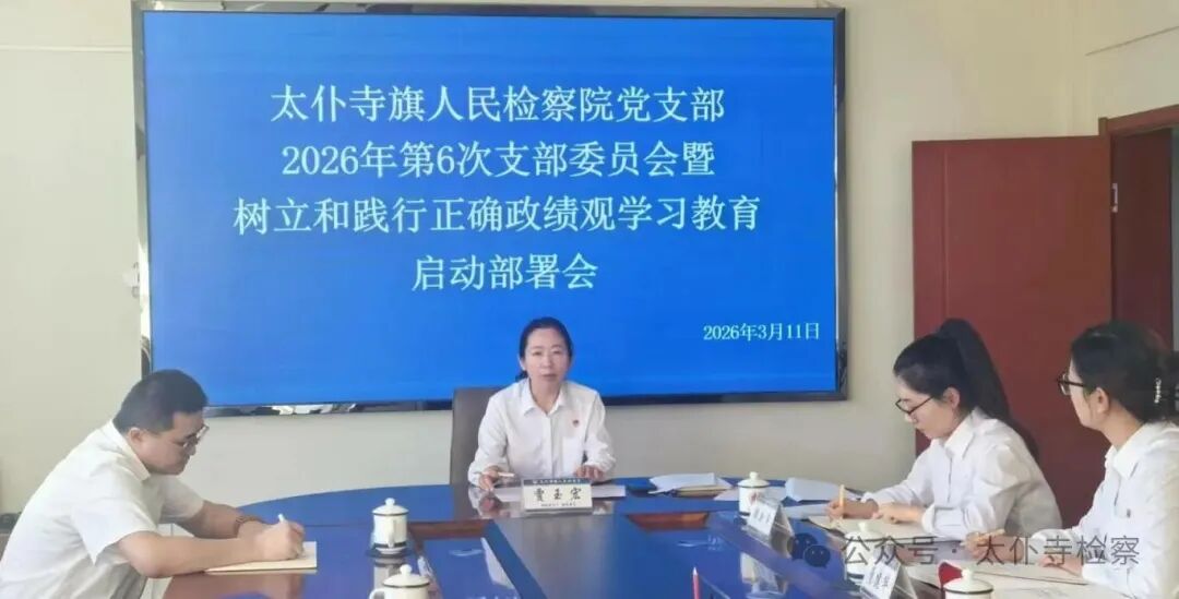3月11日,太仆寺旗人民检察院分别以召开党组会、党支部委员会的形式全面启动部署树立和践行正确政绩观学习教育工作,传达学习中央、自治区党委和盟委、旗委有关会议和文件精神,党组会研究通过了《太仆寺旗人民检察院关于开展树立和践行正确政绩观学习教育的工作安排》,支部委员会安排部署了学习教育相关工作。