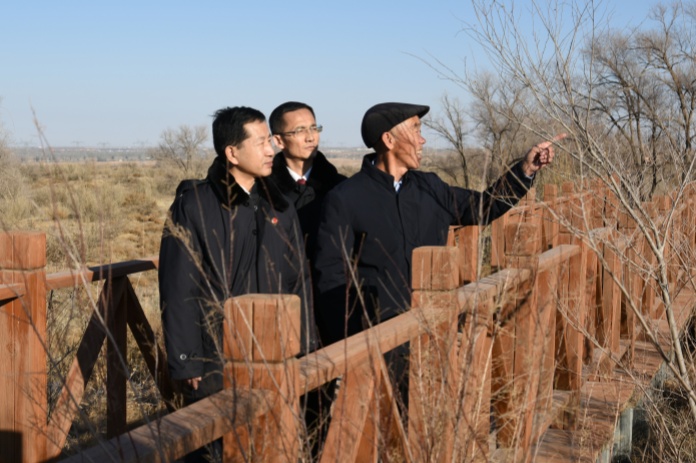 日前,甘肃省古浪县检察院邀请“时代楷模”,八步沙林场党支部书记、场长,第二代治沙人代表郭万刚深入治沙核心区域,实地查看治沙成果和管护情况,并向他征求对生态环境保护公益诉讼的意见建议。本报记者南茂林 通讯员杨韬摄